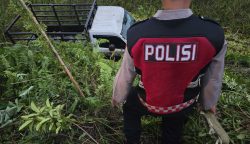 Tanggap Dan Sigap, Personel Ditsamapta Polda Kalteng Evakuasi Mobil Pickup Masuk Parit