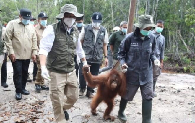 Menhut Resmikan Kawasan Rehabilitasi Orang Utan Nyaru Menteng dan Antar Orang Utan ke Sekolah Hutan