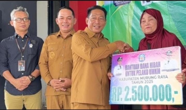 MENTAYA POST.CO.ID MURUNG Rayya, – Bupati Murung Raya, Heriyus, bersama Wakil Bupati Murung Raya, Rahmanto Muhidin, secara resmi menyalurkan bantuan dana hibah kepada para pelaku Usaha Mikro, Kecil, dan Menengah (UMKM) perorangan di Kabupaten Murung Raya, Senin (29/12/2025).