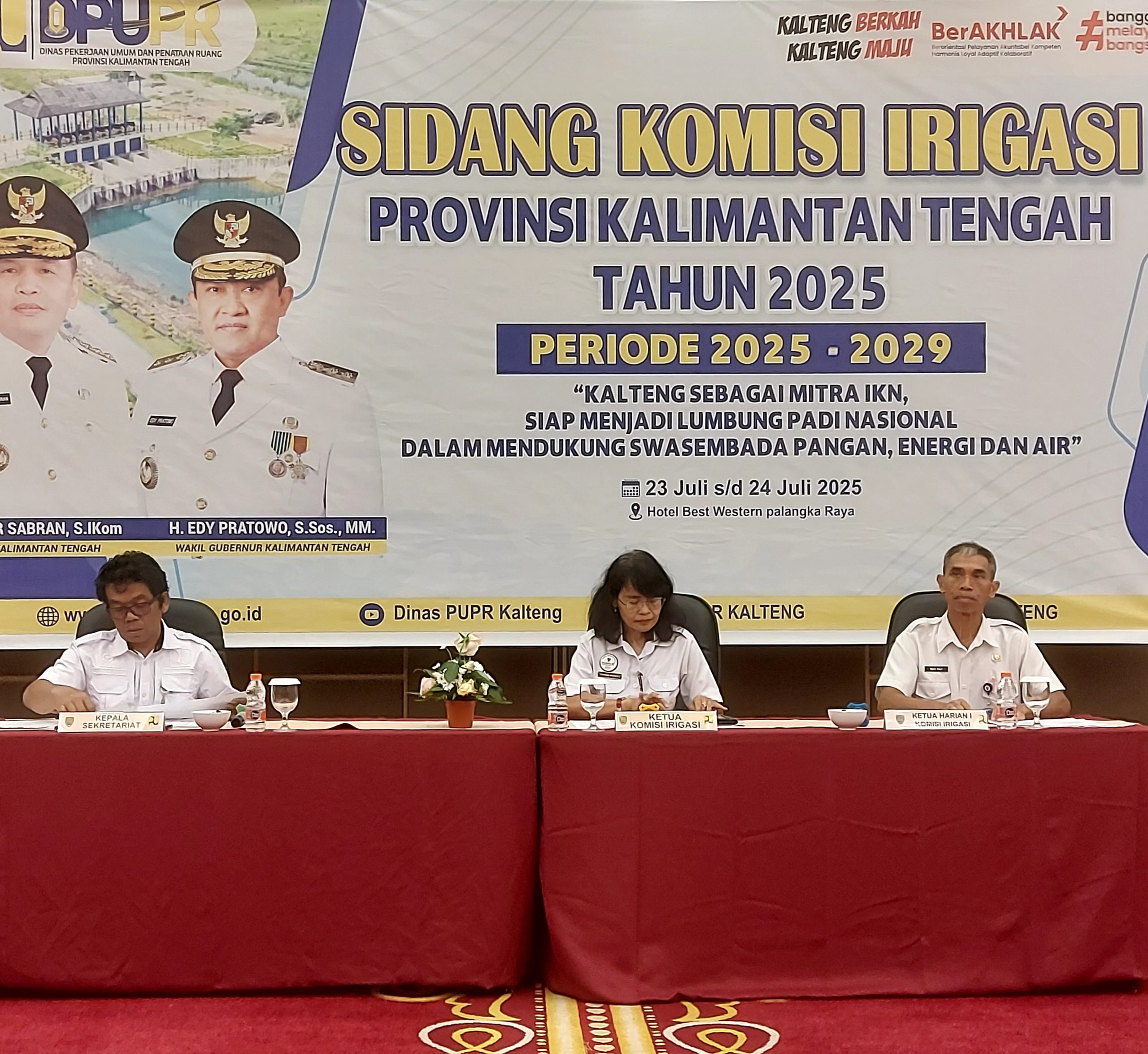 Mentayapos.co.id // Palangkaraya – Dinas Pekerjaan Umum dan Penataan Ruang (DPUPR) Provinsi Kalimantan Tengah hari ini menyelenggarakan Sidang Komisi Irigasi Tahun 2025 dengan periode 2025-2029. Bertempat di Hotel Best Western Batang Garing (Rabu 23 Juli 2025), kegiatan ini mengusung tema “Kalteng Sebagai Mitra IKN, Siap Menjadi Lumbung Nasional Dalam Mendukung Swasembada Pangan, Energi dan Air”.