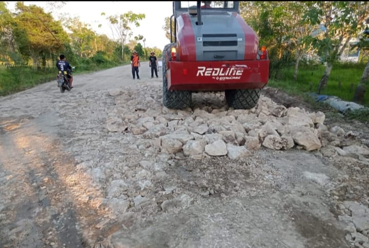Wakil Bupati Barsel Khristianto Yudha turun tangan langsung, tinjau lokasi perbaikan jalan nasional wilayah III yang sedang dikerjakan oleh Tim PPTK PUPR setampat. Tim PPTK DPUPR setempat telah melakukan gerak cepat perbaikan jalan nasional wilayah III tersebut dengan menggunakan batu gunung atau batu belah dan satu unit alat berat berupa Vibro Roller pada hari Jum’at 13 Juni 2025 pagi.