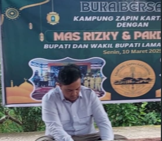 Dalam sambutannya, Bupati Lamandau Rizky Periode 2025-2030, yang minta dipanggil Mas Rizky, karena termasuk Bupati termuda di Kalimantan, menyampaikan ucapan terima kasih kepada keluarga besar kampung zapin kartawana atas undangan buka bersama sekaligus kepercayaannya memimpin lamandau periode 2025-2030, karena di RT 01B beliau menang.